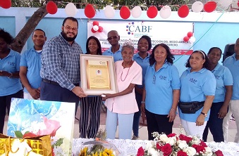 SANTO DOMINGO.-El Comité de Amigos del Barrio 27 de Febrero (CABF) rindió homenaje y entregó un pergamino de reconocimiento a la profesora Juana Antonia Jiménez, por sus 50 años al servicio de la educación pública.