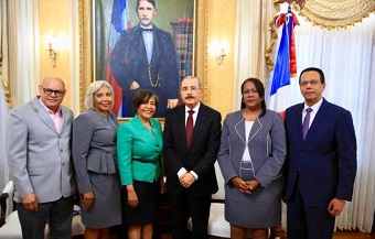 SANTO DOMINGO.- El presidente Danilo Medina recibió la visita de cortesía de la presidenta de la Asociación Dominicana de Profesores (ADP), Xiomara Guante, tras imponer la “Medalla al Mérito del Maestro”.