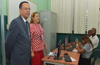 Durante su visita al plantel escolar, Peña Mirabal visitó los tres laboratorios de informática donde se desarrolla el proceso, y recibió informaciones del personal técnico.
