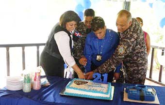 Durante el almuerzo, el oficial número 2, como él mismo se designó, fue felicitado por el rector del Instituto Policial de Educación (IPE), general Edward Sánchez González, mientras que un coro de cadetes le dedicaron canciones de cumpleaños.