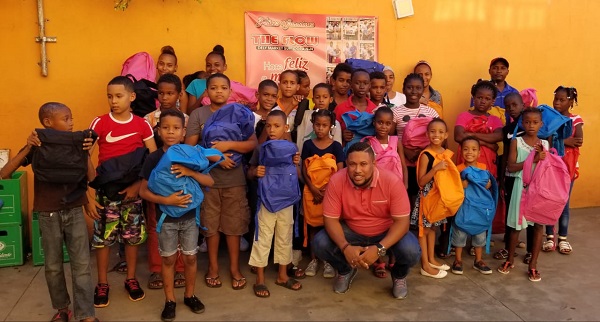 «El Flow» regala útiles escolares a decenas de niños en La Guáyiga de Pedro Brand