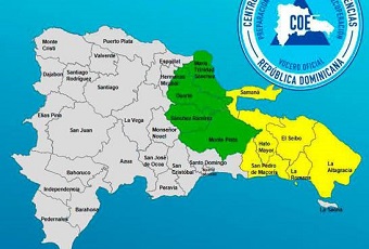 Las provincias en alerta amarilla son San Pedro de Macorís, La Romana, Hato Mayor, La Altagracia, El Seibo y Samaná. En tanto, en alerta verde se encuentran Monte Plata, Duarte, Sánchez Ramírez y María Trinidad Sánchez.