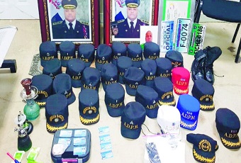En su informe, la Policía dijo que en el operativo apresaron a un hombre que presuntamente se hacía pasar por coronel de la institución y estafaba personas con altas sumas de dinero vendiendo esos objetos.