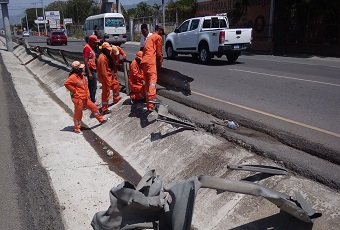 Conjuntamente con eso estamos llevando un proceso para cumplir con la ley 340 para adquirir las barandas. Las barandas que están provocando peligro en la vía, la estamos cortando y las estamos eliminando. Otras que podemos recuperar, que se limpian y se enderezan, la estamos recolocando”, dijo el ingeniero Pepín.