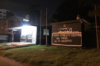 Pintan de negro casa nacional del PNVC en rechazo de presidencia Juan Cohen