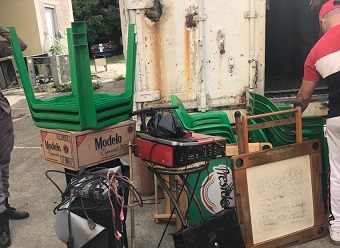 Entre los equipos retenidos están siete cajones de bocinas, tres plantas de música, veinte sillas plásticas, cinco juegos de dominó, tres mesas plásticas, dos bancos de hierro, ocho Tacos, un triángulo y 30 bolas de billar.