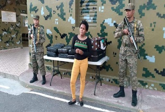 AZUA.- Miembros del Ejército de la República Dominicana (ERD), de servicio en el puesto de chequeo ubicado en el kilómetro 15 del tramo carretero Azua-Barahona, detuvieron al amanecer de este sábado una mujer a la que le ocuparon varias pacas de supuesta marihuana.