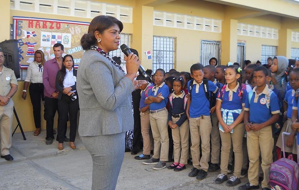 En foto de archivo la Licda. Beltrán Lapaez en la escuela Francisco del Rosario Sánchez en El Brisal, distrito municipal La Guáyiga