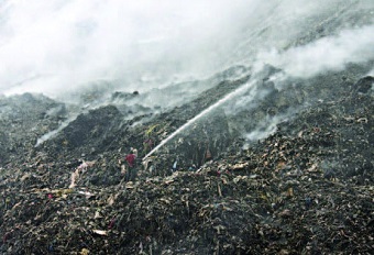 SANTO DOMINGO.- El Ministerio de Obras Públicas acudió ayer a trabajar en la extinción del fuego en el vertedero de los Bajos de Haina, a 13 días del siniestro que provoca humareda y afecta la vida cotidiana de la población de este municipio.
