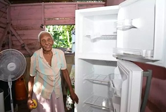 Como parte del programa de ayudas sociales, Isabel, recibió la entrega de un juego de comedor y de sala, un box Spring, una nevera, una estufa de horno, cilindro de gas, televisor, abanico y otros enseres del hogar que según la madre, quien reside con su hermano Francisco Jiménez de 119 años, a partir de hoy cambian sus vidas.