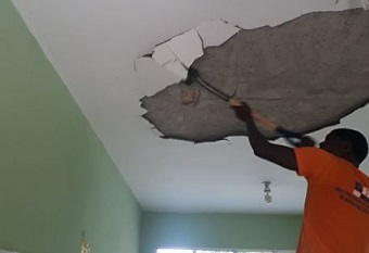 Indicó que a los techos se les ha cubierto con un metro y hasta metro y medio del empañete desprendido, por lo que se espera concluir en los próximos cuatro días.