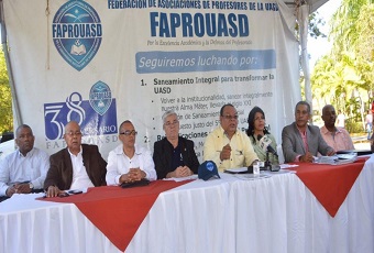 SANTO DOMINGO.- La Federación de Asociaciones de Profesores de la Universidad Autónoma de Santo Domingo (Faprouasd) convocó para hoy al “primer paro de alerta por 24 horas, presencial en los salones de profesores y sin firmar asistencia”, para exigir a las autoridades el cumplimiento de los acuerdos y un pliego reivindicativo.
