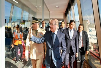 La llegada de Danilo Medina se produjo a las 3:50 de la tarde, en un vuelo comercial, por el Aeropuerto Internacional Las Américas José Francisco Peña Gómez.