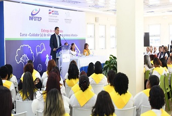 SANTO DOMINGO.- Ochenta y seis mujeres recibieron certificados como Cuidador de Niños y Niñas en la Primera Infancia tras seis meses de instrucción y capacitación a cargo del Instituto Nacional de Formación Técnico Profesional (INFOTEP).