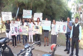 Lanzando consigamos y con pancartas en manos los familiares de Juan Bautista Encarnación y Ercilio Aquino Ogando se apostaron en la parte frontal del Palacio de Justicia en reclamo de la pena máxima para su verdugo.
