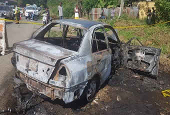 VILLA ALTAGRACIA.- Una mujer murió calcinada y tres hombres resultaron heridos luego de que se incendiara el vehículo en que se desplazaban, en un hecho registrado en el municipio Villa Altagracia.