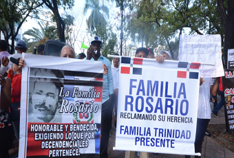 SANTO DOMINGO.- Miembros de la familia Rosario escenificaron otra vez una protesta, esta vez frente a la sede central del Banco de Reservas (manejado por el Estado dominicano), en reclamo de una fortuna que le habría dejado como herencia su familia de origen español que se radicó en el país, y que dicen está en la entidad financiera. Agregaron que se han contratado abogados en el extranjero para defender su caso.
