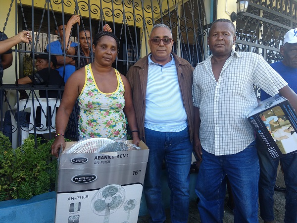 PEDRO BRAND.- El alcalde de este municipio Ramón Pascual Gómez Abreu (El Mello) inició esta tarde la entrega de más de un millón de pesos en electrodomésticos a empleados de ese ayuntamiento que resultaron ganadores en una rifa que celebró el domingo pasado en un pasadía bailable que les hizo la institución.