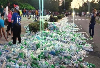 SANTO DOMINGO.- Las inmediaciones del Parque Mirador Sur amanecieron la mañana de este jueves repletas de botellas y desechos de plástico que presumiblemente fueron lanzadas en el lugar por desaprensivos.