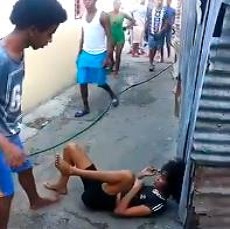 La agresión ocurre en un callejón. De acuerdo a internautas, el lugar es el sector La Puya, en Capotillo, cerca de la calle Josefa Brea, en el Distrito Nacional.