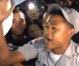 Tras ser ovacionado por la multitud, el agente dijo a los presentes que renunciaba a la Policía Nacional, acción calificada como insubordinación y rebelión en contra del orden legalmente constituido.
