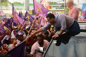 Una nota de prensa indica que el candidato del partido oficialista recibió el apoyo de la militancia peledeísta y de los simpatizantes de su candidatura en las esquinas formadas por las avenidas España y del Faro a Colón, próximo a los Molinos Dominicanos, en la circunscripción número uno.