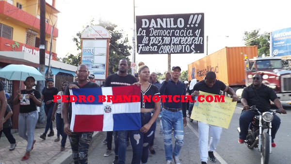 PEDRO BRAND.- Con pancartas y vestidos con polocher negro un grupo de residentes de este municipio participó la tarde de este sábado en una marcha contra la Junta Central Electoral (JCE) y el Gobierno dominicano.