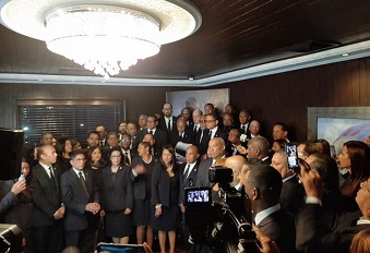 Alfredo Pacheco dio lectura a un documento, junto a los legisladores de los distintos partidos de oposición, que vestidos de negro como establece el protocolo, no estarán presentes en esta última rendición de cuentas de Medina hoy día del 176 aniversario de la Independencia Nacional.