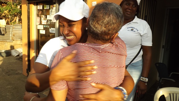 PEDRO BRAND.- La regidora y candidata de nuevo al cargo por el Partido Revolucionario Dominicano (PRD) en alianza con el Partido de la Liberación Dominicana (PLD) en Pedro Brand, licenciada Carmen Acevedo, realizó este sábado un mano a mano por diferentes sectores de este municipio como parte de su campaña electoral con miras a las elecciones municipales del próximo 15 de marzo.