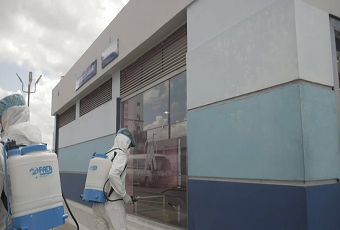 En un video colgado en la cuenta de Twitter de la Oficina para el Reordenamiento del Transporte (@OPRET_RD), se ve a una persona fumigando una de las estaciones del Metro de Santo Domingo.