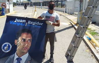 Regidor electo Juan Vargas retira afiches de campaña en Pedro Brand