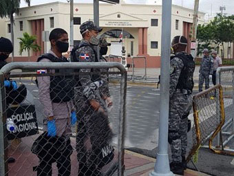 SANTO DOMINGO.- Todos los alrededores del Palacio Nacional están cercados con vallas metálicas y un contingente de agentes antimotines de la Policía Nacional.