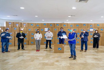 Exalcalde David Collado, empresarios y el PNUD entregan de un millón de mascarillas