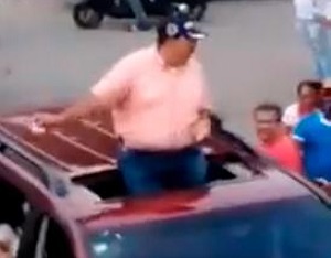 El video muestra el político tirando el dinero desde el techo de una yipeta en la que se desplazaba y era seguido por una larga hilera de vehículos.
