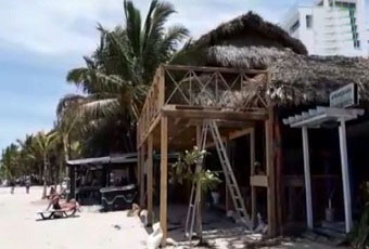 Comerciantes de Boca Chica ocupan área de playa, chocan con autoridades
