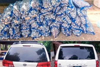 Al lugar se presentaron el fiscalizador Jhon Manuel Mercedes Francisco y miembros de la Policía Nacional, quienes procedieron a abrir dichos vehículos, encontrándose en los 52 sacos de ajo.