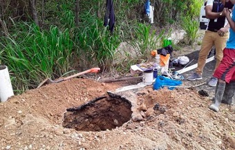 CORAASAN repara hoyo en carretera recién inaugurada por expresidente Medina