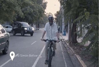 A través de su cuenta de Twitter, el funcionario publicó un video en el que se le observa salir de su residencia hacia el Ministerio de Medio Ambiente, de la avenida Cayetano Germosén, en bicicleta.