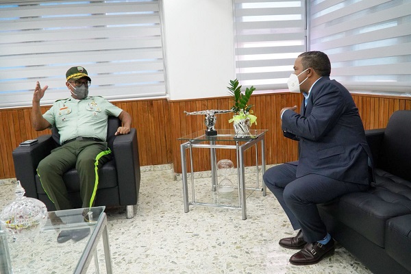 SANTO DOMINGO.- El director de la Dirección General de Seguridad de Tránsito y Transporte Terrestre (DIGESETT), general de brigada Ramón Antonio Guzmán Peralta, recibió en su despacho al senador de la provincia Monseñor Nouel (Bonao) y merenguero, Héctor Acosta (El Torito).