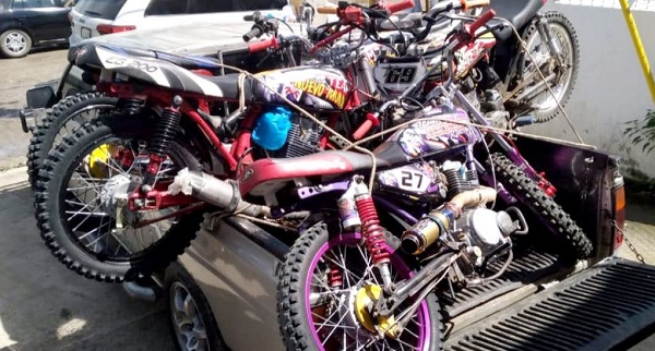 Las motocicletas retenidas modelo CG-200 sin numeración visible en el chasis, eran transportada en una camioneta marca Nissan color crema placa L-031441.