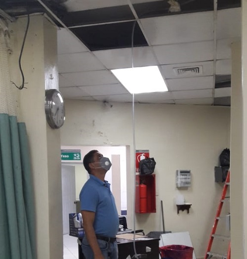 El licenciado Pablo Antonio Alduey Guerrero dijo que al asumir el cargo el pasado 10 de septiembre encontró esta avería que dificultaba el trabajo del personal médico de servicio en ese espacio, y un riesgo para la salud de los pacientes, además del peligro que representa caminar en un piso mojado.