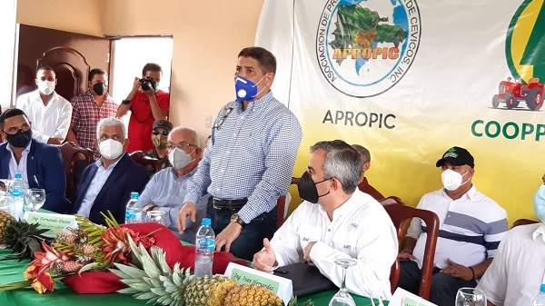 El titular de la cartera agropecuaria aseguró que el Gobierno del presidente Luis Abinader está en la disposición de proveer el apoyo económico, tecnológico y técnico para mejorar la rentabilidad de la producción de piña, cuyas exportaciones aportan al país ingresos en más de cinco millones de dólares anuales.