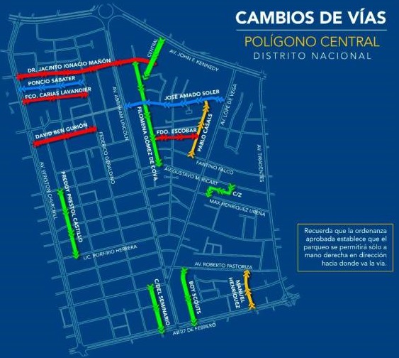 Los cambios viales del polígono central ampliado comprenden 42 calles dentro del cuadrante de la Avenida Máximo Gómez, la John F. Kennedy, la Gregorio Luperón y la 27 de Febrero.