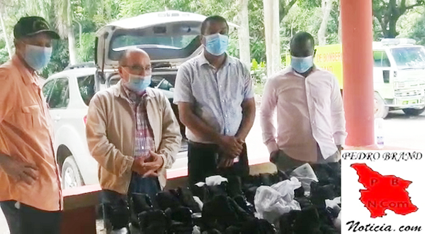 PEDRO BRAND.- El empresario Mario Fuerte hizo entrega la tarde de este viernes de un donativo de 50 pares de botas al Cuerpo de Bomberos de este municipio, con el propósito de mejorar las condiciones en que prestan servicios los miembros de esta institución, en pro de salvar vidas y preservar propiedades.