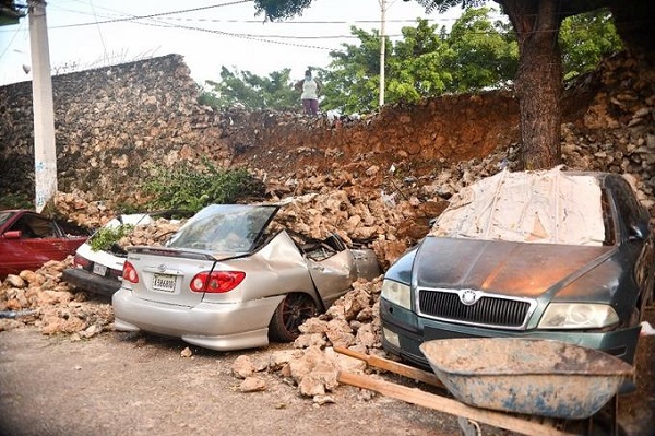 Se cae parte del “muro de la vergüenza” y aplasta varios vehículos en Villa Duarte