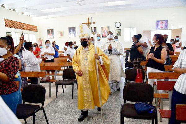 La homilía contó con la asistencia de docenas de feligreses, quienes llenos de regocijo cantaban alabanzas cumpliendo con el debido distanciamiento social.