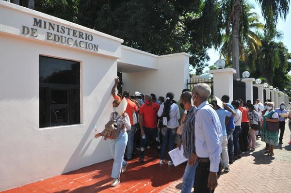 SANTO DOMINGO.- Decenas de empleados cancelados de escuelas públicas de diferentes provincias exigieron la mañana de este miércoles en las afueras del Ministerio de Educación (MINERD) conocer las causas de sus desvinculaciones, mientras que otros estaban a la espera de la entrega de sus prestaciones laborales.