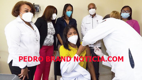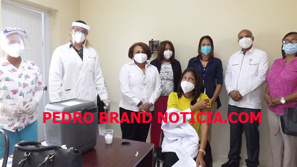 PEDRO BRAND.- El ministerio de Salud Pública dio inicio este miércoles al primer día de vacunación contra el COVID-19 al personal médico que trabaja en el Hospital Rodolfo de la Cruz Lora en Pedro Brand.
