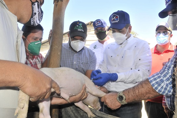 SANTIAGO RODRÍGUEZ.- El ministro de Agricultura, Limber Cruz, aplicó las primeras dosis a dos cerditos bebés para dejar iniciada la Primera Jornada Nacional de Vacunación contra la Peste Porcina Clásica (PPC).