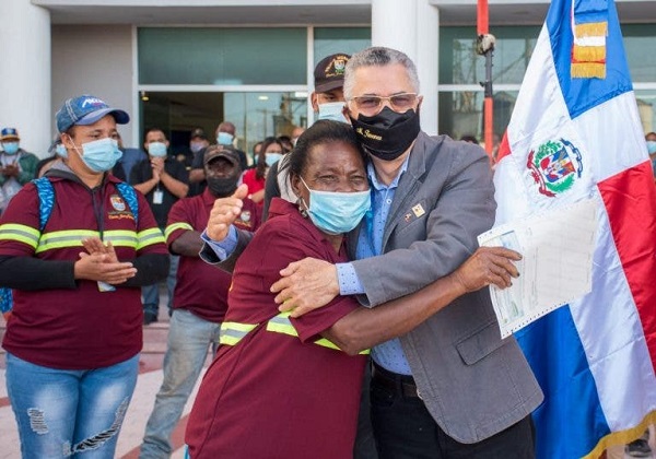 “Mejoramos los salarios y las condiciones de vida de nuestros servidores, porque hemos saneado las cuentas del Ayuntamiento, y porque a través de sus manos y de su trabajo es que vamos a materializar nuestro sueño de convertir a Santo Domingo Este en una verdadera ciudad, justa y creativa”, declaró Jiménez al entregar el cheque simbólico a una conserje que trabajaba a horario completo por un salario de RD$5,000 mensuales.